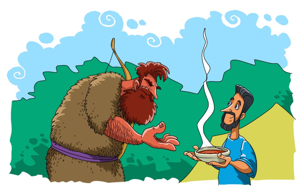 Esau didn’t care about anything at that moment but food. See food. Eat food. Red stew? Good. Give me some. Birthright? What good is a birthright if I’m about to die. Drama much, Esau? But he was thinking with his gut. Derek Kidner said, “he was a prey to his craving.” At this moment, he was not the mighty hunter but the weak prey. You may say that Jacob wasn’t much better. And on one level, you’re exactly right. He was the usurper, right? The heel-grabber, the one who trips up to take advantage, and he was doing just that with his brother. The difference is that what Jacob desired more than anything was worth desiring. That made Jacob the more godly man. He gave his brother what he craved and Esau walked away, thinking nothing of the consequences to his soul. The text is stark: “…He ate and drank and rose and went his way. Thus Esau despised his birthright.”